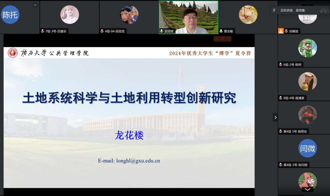 夏令营期间,学院为夏令营营员安排了两场精彩的学术讲座——史云贵教授题为“人民美好生活区域实现的城市空间形态探索与绿色治理路径”的讲座与龙花楼院士题为“土地系统科学与土地利用转型创新研究”的讲座,对营员们扩宽学术视野、激发了科研兴趣起到了积极作用。