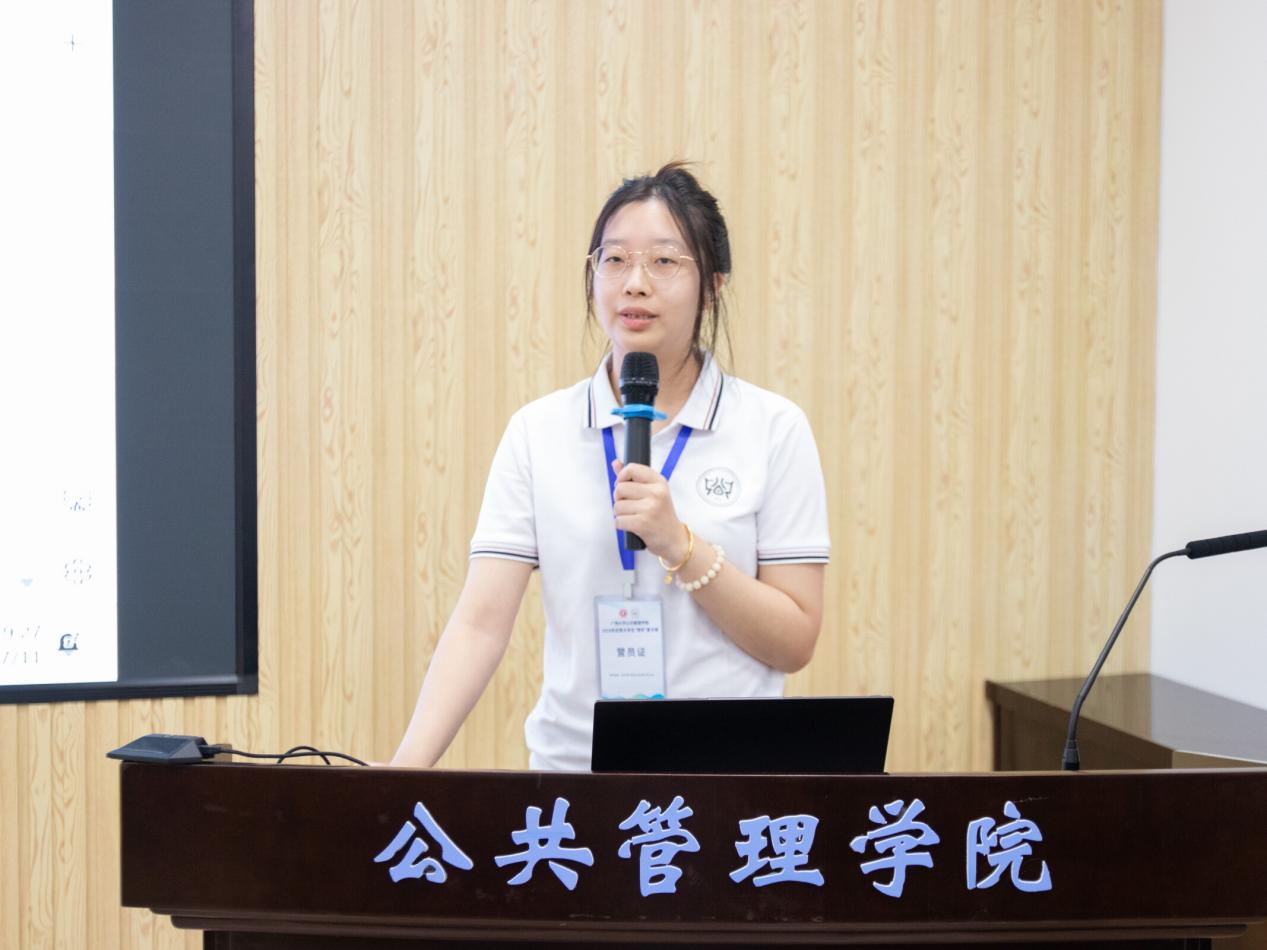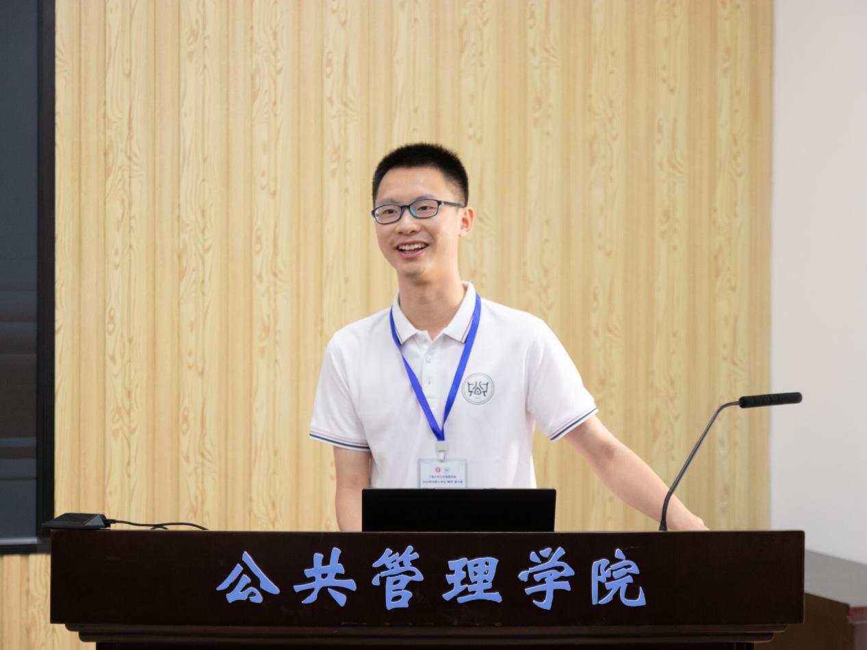 仪式上,覃志敏发表闭营致辞。首先,覃志敏对本次“博学”优秀大学生夏令营活动的成功举办表示热烈祝贺,对积极参与本次夏令营的各大高校优秀学子表示衷心感谢。随后,覃志敏对本次夏令营活动中的营员表现进行了总结:本次夏令营以“博学”为主题,通过线上线下相结合的方式,为营员们提供了丰富的学习体验——线上“云”游校园,感受广西大学深厚的学术底蕴和浓郁的人文气息;线下谒见名师,与优秀教师面对面交流,聆听专家学者讲座,拓宽学术视野,并通过无领导小组讨论及学术成果展现了自身的逻辑思维和思辨能力。覃志敏进一步与大家表达了三个期望:第一,他鼓励同学们不仅要深钻细研学科经典专著,构建起扎实的理论框架,更要勇于将所学应用于实践之中;第二,他希望同学们能够继续保持这份开放与包容的心态,与志同道合的伙伴携手并进,在相互学习与支持中共同成长,同时积极关注社会热点问题,以公共管理专业的视角,思考如何更好地服务社会、贡献国家;第三,他强调同学们应该将个人理想融入国家发展大局之中,让青春在为祖国和人民的奋斗中绽放光彩。最后,覃志敏祝愿同学们能够以这次夏令营为新的起点,继续扬帆起航、勇往直前,实现更大的成功。