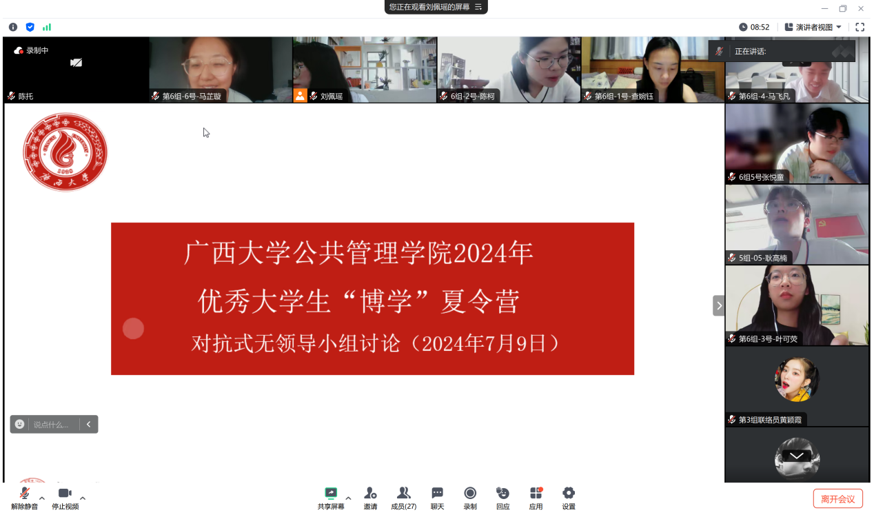 7月11日上午,bat365在线官网登录2024年优秀大学生“博学”夏令营闭营仪式在107会议室与线上会议同步举办。bat365在线官网登录副院长覃志敏、奉婷老师、谯欣怡老师、蓝媛美老师等教师代表出席会议。闭营仪式由bat365在线官网登录党委副书记于丹老师主持。